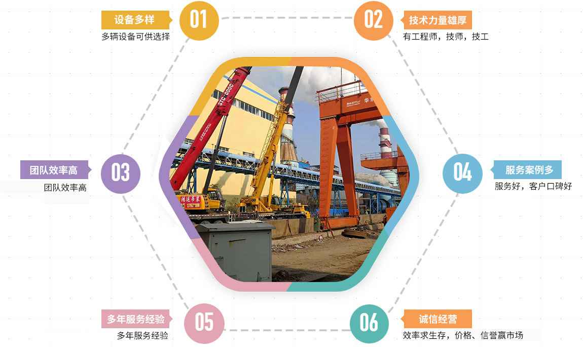开元官方网站-开元kaiyuan(中国)长年对外出租随车吊及吊车,专注承接各种工程施工,重物吊装,机器设备安装等业务。公司对租赁车辆建立了完善的车辆保障体系,每月进行车辆例行保养,确保车辆在使用过程中安全正常的运作。即使在车辆出现突发故障的情况下,也能通过公司的应急保障措施,确保业主方正常用车。技术力量雄厚:有工程师,技师,技工!是一家有实力的团队,可为厂房搬迁,大件设备吊装,设备起重、就位! 生存宗旨:效率求生存,价格、信誉赢市场!就近派车,随叫随到,24小时服务!望新老客户给予大力的支持和帮助!我们会热情的为您提供满意的服务! 公司本着“为客户创造价值”这一核心理念。多年来,我们凭借着多年的丰富经验,以技术和服务为优势,不断开拓租赁市场,提高服务质量。公司自成立以来,先后承接了多个吊车租赁业务,并赢得了客户的充分肯定和信赖。我们坚信,在新老客户的支持和帮助下,公司必将在吊车租赁行业中作出更大的贡献!